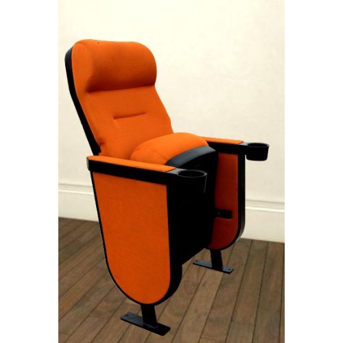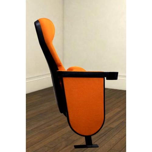 Solium C4 Features: A Foldable Pushback Auditorium Chair with Fully-upholstered seat Assembly and Plastic covered back cushions assembly for economic and vandal-proof performance. This chair Also Consists of the Synchronized Push Back System along with the Seat tip-up Feature.
