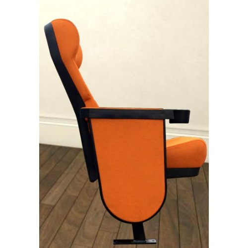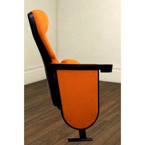 Solium C4 Features: A Foldable Pushback Auditorium Chair with Fully-upholstered seat Assembly and Plastic covered back cushions assembly for economic and vandal-proof performance. This chair Also Consists of the Synchronized Push Back System along with the Seat tip-up Feature.